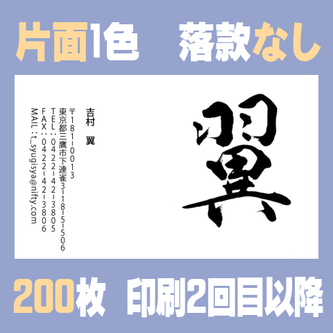 筆文字名刺 よこD 片面1色落款なし 200枚